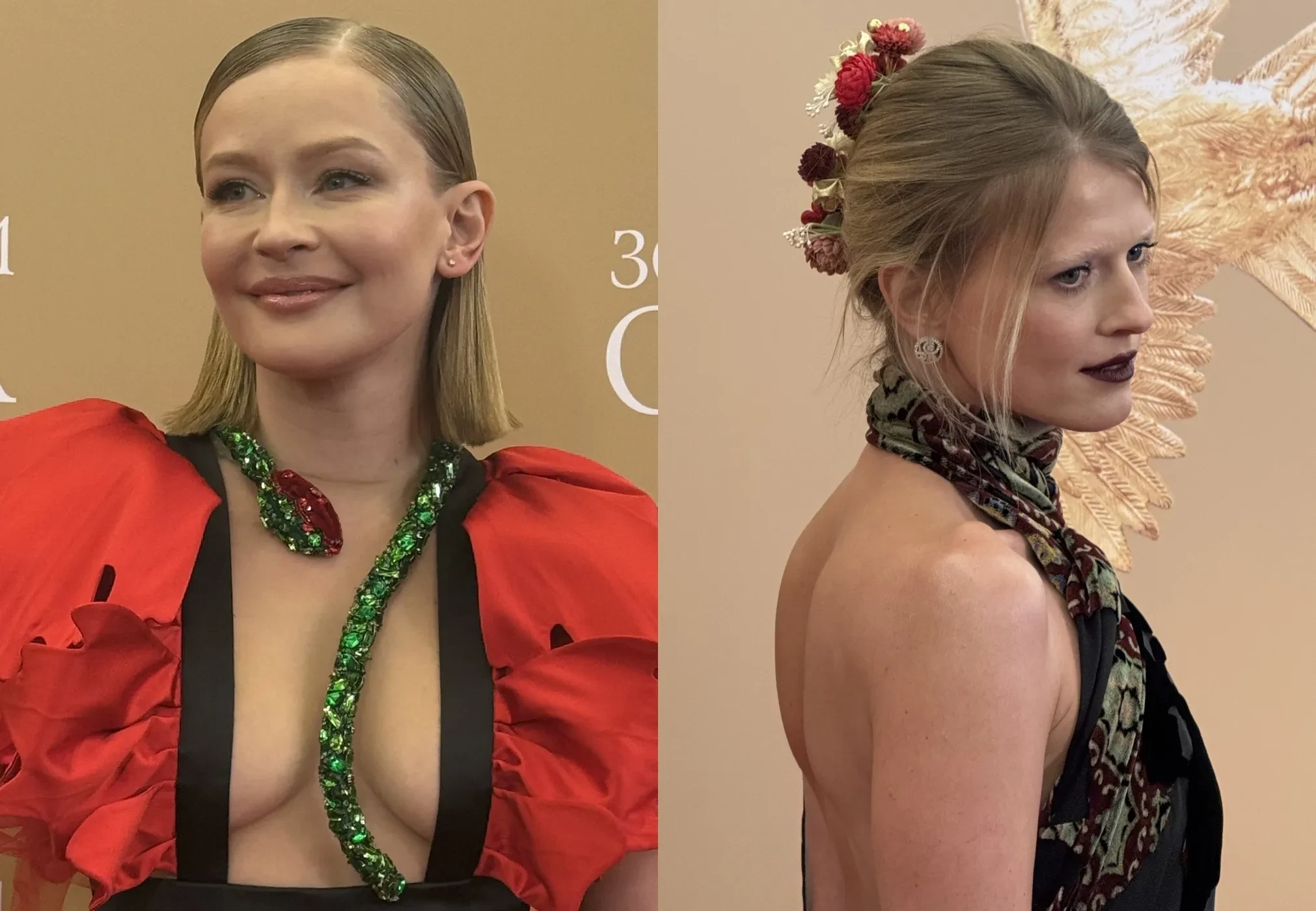 41-летняя Юлия Пересильд, которая недавно поддержала дочь Анну и её бойфренда Ваню Дмитриенко на его концерте, где влюблённые исполнили песню дуэтом, стала звездой вечера, появившись в эффектном чёрно-красном платье с глубоким декольте и "змеёй" на шее. 38-летняя Анна Чиповская, в свою очередь, выбрала чёрный брючный комплект с цветочными аппликациями.