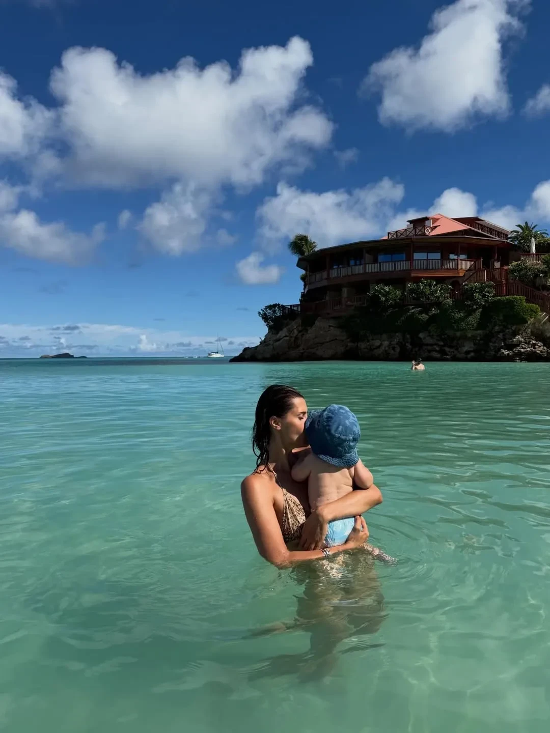 На фото Оболенцева позирует в купальнике Chanel и прозрачной юбке на острове Сен-Барт, где пара год назад сыграла свадьбу. "Любовь — это пятое время года. А.А.А.", — подписала фото Надежда.