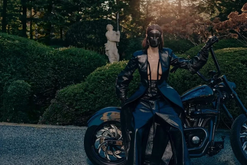 На снимках супермодель позирует перед фотографом Стивеном Кляйном на мотоцикле в кожаном бомбере и с лошадью в ботфортах и фартуке. Также она примерила кожаный плащ с маской и платье с перчатками для съёмки в ванной. "Этот персонаж родился в наших ночных беседах и был вдохновлён его [Кляйна] миром", — подписала фото Шейк.