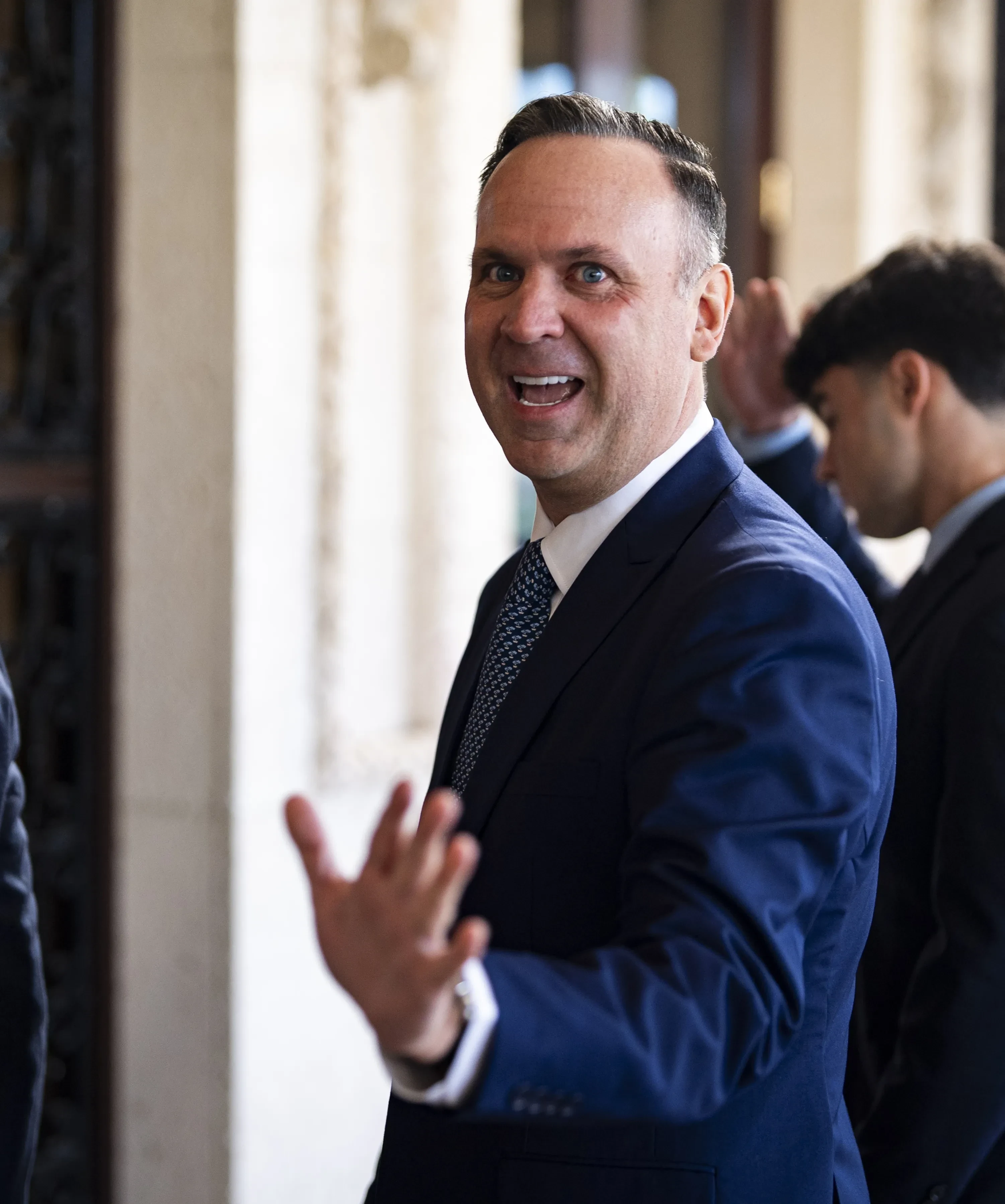 Дэн СкавиноЭрин ЭлморЭрин Элмор с сыномГлавный прокурор США Пэм Бонди с бойфрендом Джоном УэйкфилдомМинистр обороны США Пит Хегсет с женой Дженнифер РаучетСоветник президента США Питер Наварро с женой Лесли ЛебонНакануне в парижском офисе соцсети X Илона Маска прошли обыски, а трансгендерная* дочь миллиардера заявила, что он причастен к секс-преступлениям миллиардера-педофила Джеффри Эпштейна — как и Дональд Трамп.