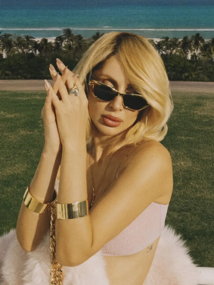 Светлана Лобода снялась в новой фотосессии в Дубае. На снимках, которые 43-летняя певица опубликовала в соцсетях, она позирует в нижнем белье, чулках и шубе на фоне пляжа. Образ дополнили золотые наручники и солнцезащитные очки.