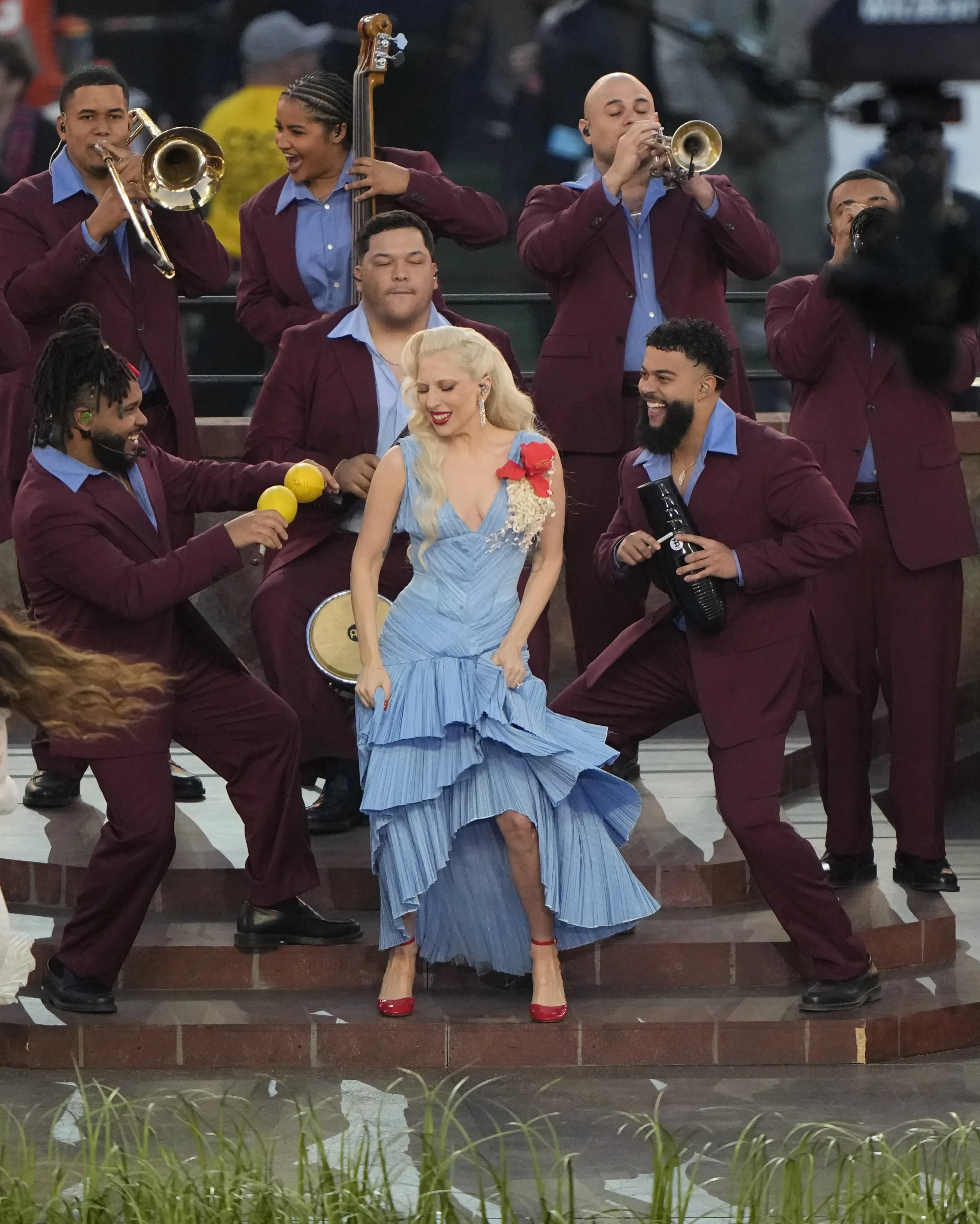 Green Day (Билли Джо Армстронг и Майк Дёрнт)Bad BunnyМолодожёны на выступлении Bad BunnyТрэвис СкоттРики МартинПедро Паскаль, Кароль Джи и Карди БиДжейми Фокс с дочерью АнелизойБарбара Палвин и София ГрейвсРанее прошла ежегодная вечеринка Майкла Рубина Fanatics Super Bowl Party, которую посетили: Кендалл Дженнер, Карди Би, Барбара Палвин с мужем Диланом Спроусом, экс-супруг Жизель Бундхен Том Брэди, Эмма Робертс, Сиара и другие.