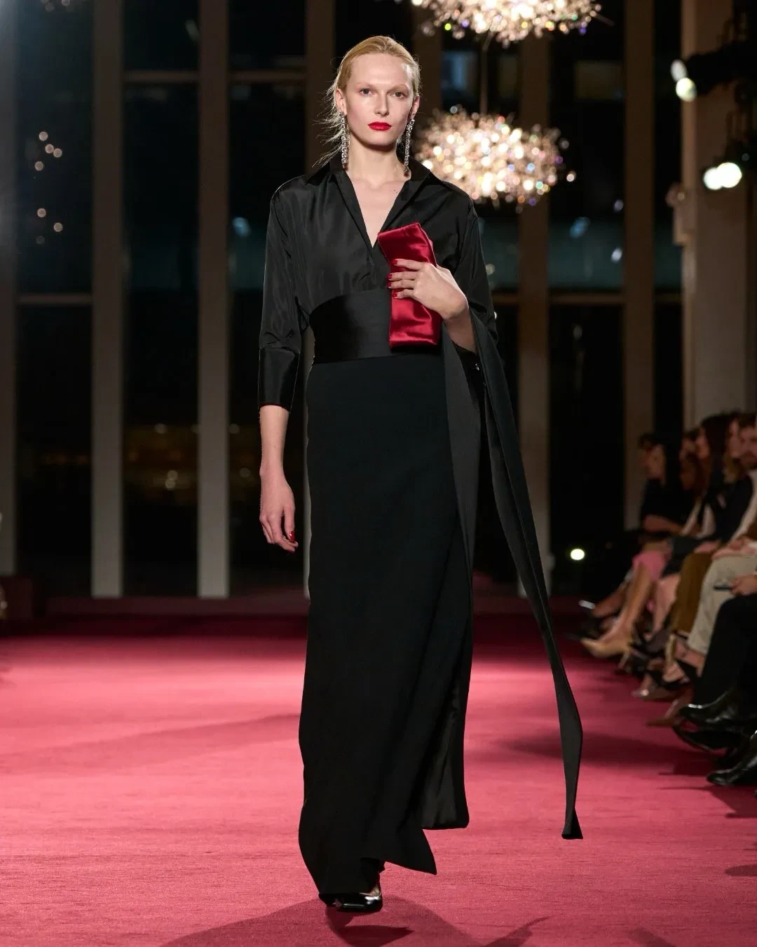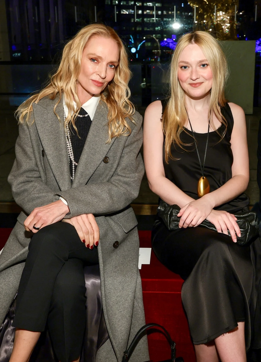 55-летняя Ума Турман пришла в чёрных брюках и сером пальто, дополнив строгий образ жемчужными бусами. 26-летняя дочь актёров Риз Уизерспун и Райана Филиппа Ава надела классическое чёрное платье, а 47-летняя экс-солистка группы The Pussycat Dolls Николь Шерзингер блистала в коричневом платье и белом пальто.
