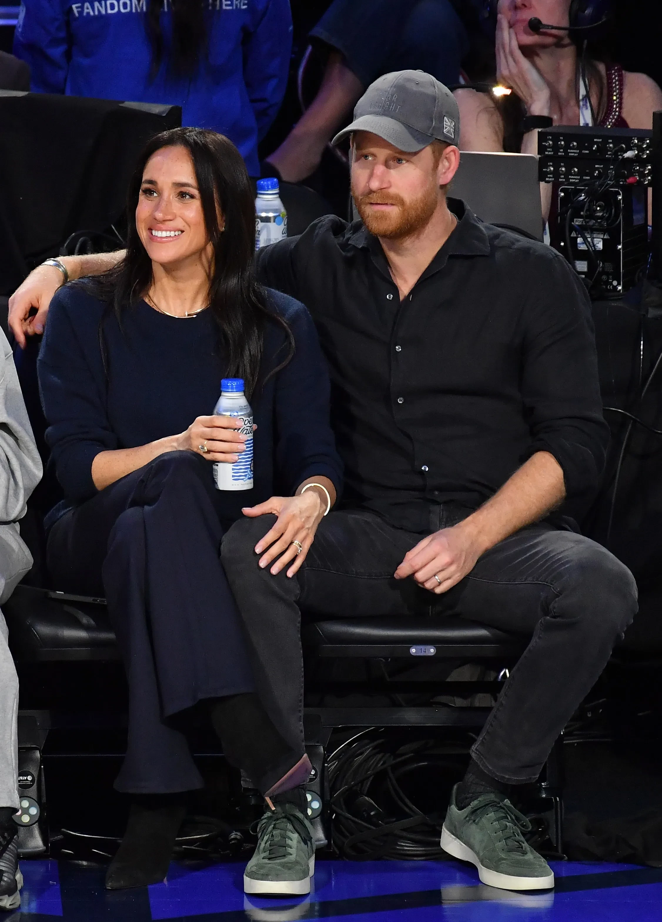 44-летняя Меган Маркл пришла на игру в синих брюках и свитере в тон, а также в обуви на каблуках. 41-летний принц Гарри надел чёрную рубашку, кепку и джинсы.