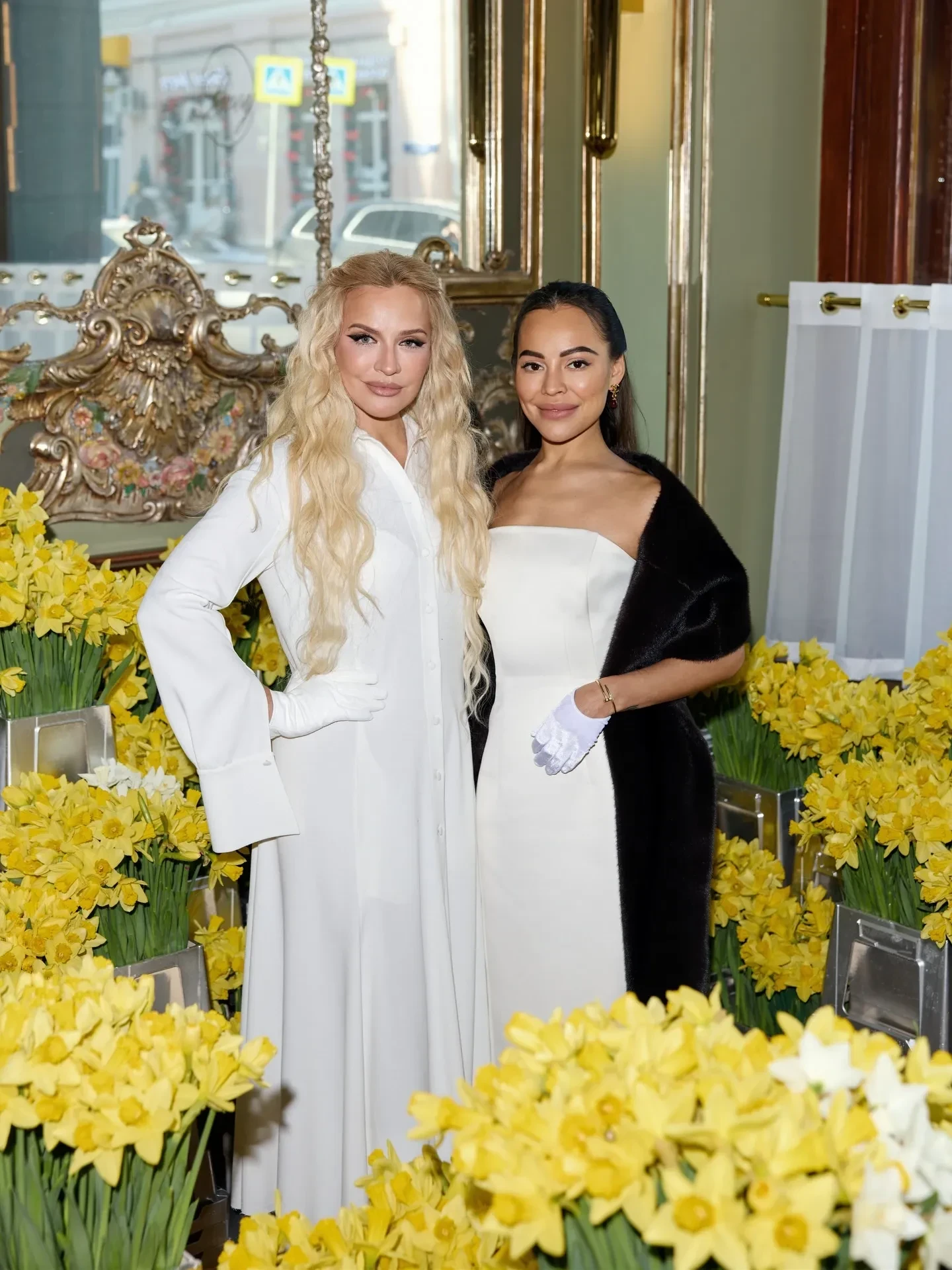 Праздничным дресс-кодом стали образы в жёлто-белой цветовой гамме, напоминающей о нарциссах, которыми было украшено всё пространство. Столы ломились от угощений: наряду с традиционными блинами и оладьями присутствующих угощали пирожками с мясом и капустой, соленьями, шоколадными конфетами и петушками на палочке, которые предлагали запивать травяным чаем и настойками.