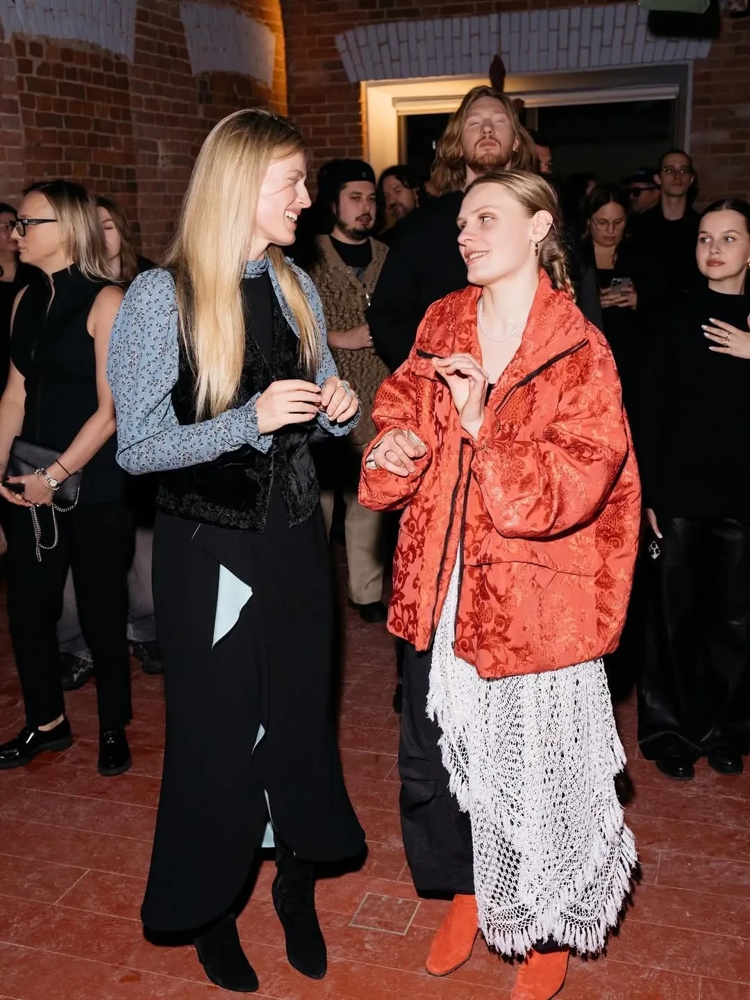 37-летняя актриса провела вечер с артистами Дома культуры, а среди гостей были Прохор Шаляпин, певица Тина Кузнецова и другие. Эрнст появилась на публике в длинной чёрной юбке, блузе с цветочным принтом и жилете.
