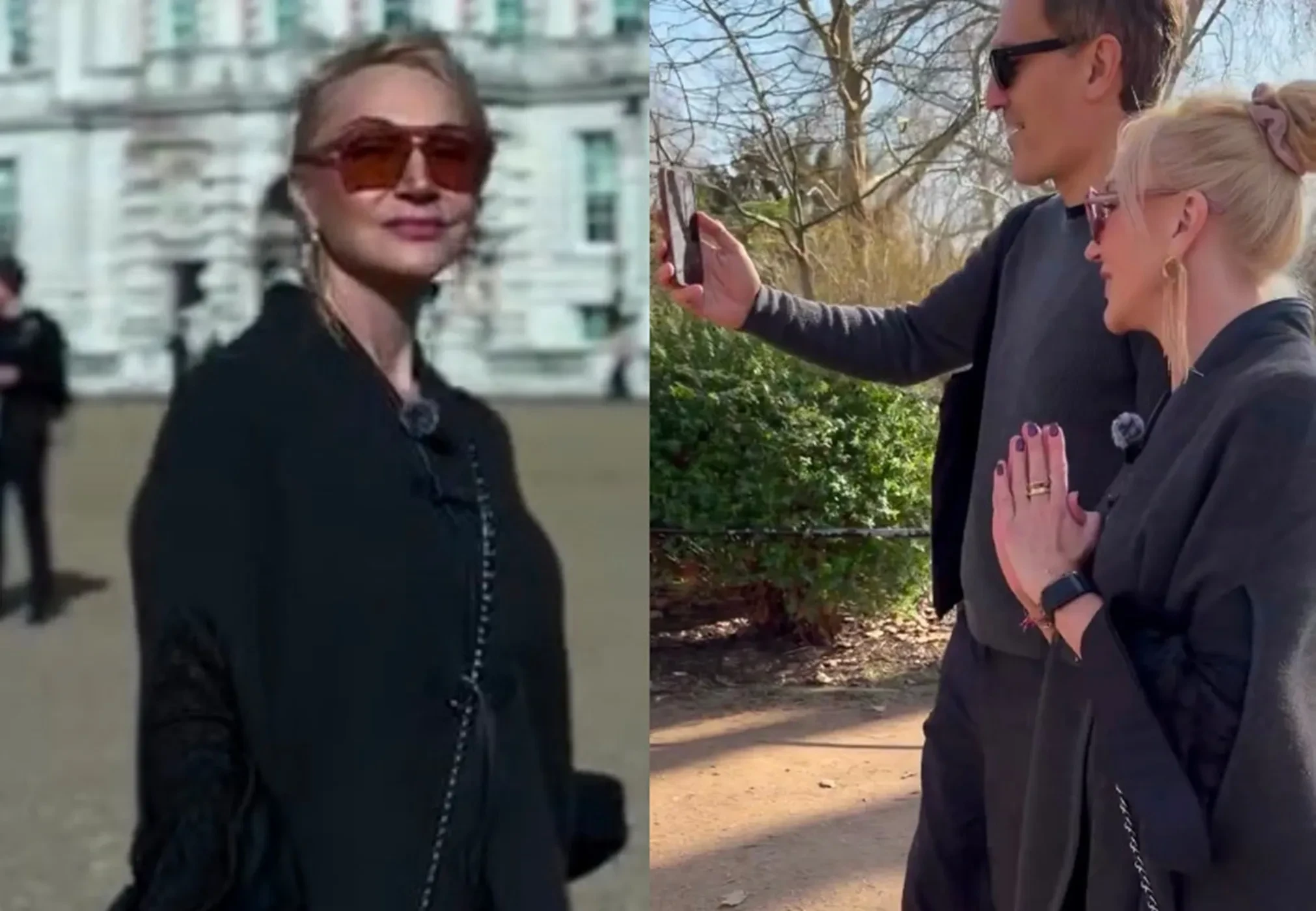 Супруги прилетели в Лондон без дочери. 13-летняя Клавдия осталась в США из-за учёбы, но родители постоянно поддерживают с ней связь. "Ой, привет! А мы прогуливаемся! Там сзади Букингемский дворец!" — показывает Кристина дочери по видеосвязи достопримечательность Лондона.