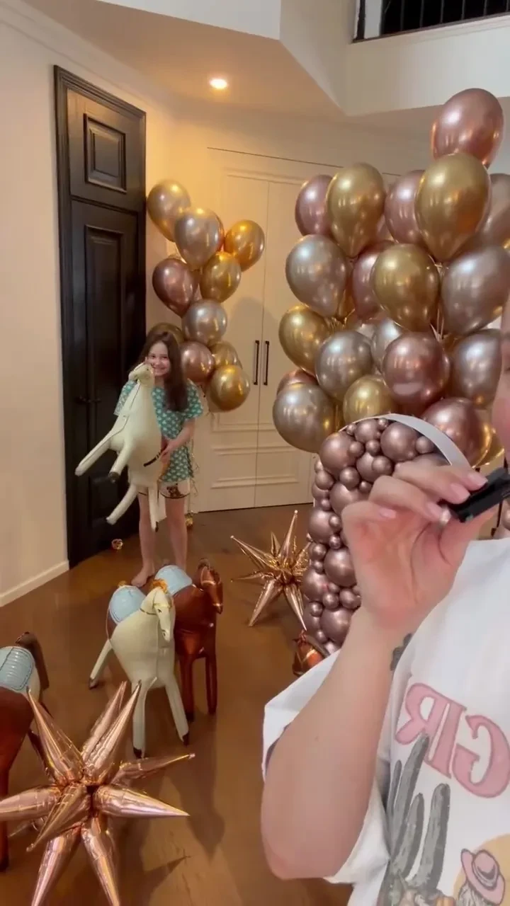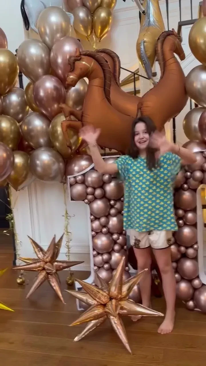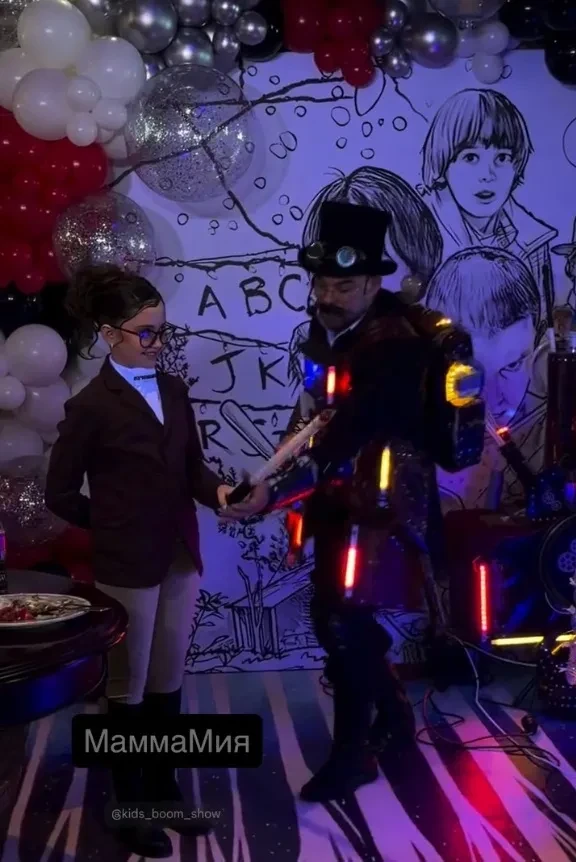 Муцениеце устроила Мие вечеринку в стиле сериала "Очень странные дела" с аниматорами и мастер-классом по украшению фигурок Лабубу. Именинница появилась перед гостями в наряде в стиле наездницы (известно, что Мия увлекается конным спортом).