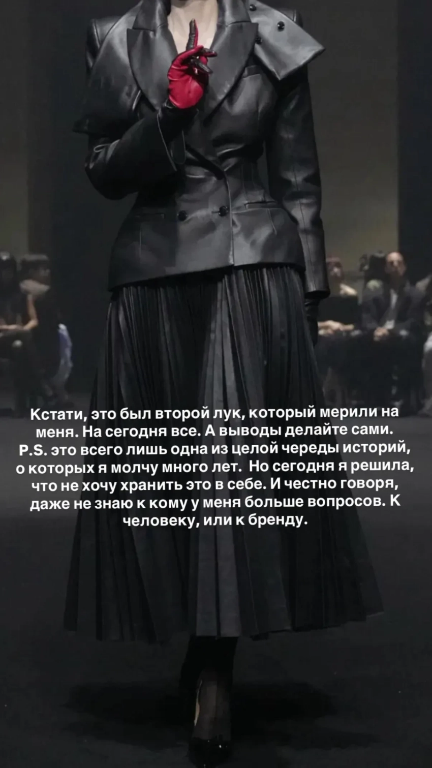 После этого модель и светская львица опубликовала образ Литвиновой с показа и призналась, что этот наряд она надевала на примерке.