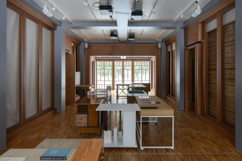 В конце 90-х годов здание сильно пострадало от частных съёмщиков и находилось в аварийном состоянии. Чтобы сохранить его, необходимо было фактически подвесить дом в воздухе, залить под него фундамент и укрепить конструктив внутренним каркасом из бруса. Для центрального зала художник Алексей Лука создал инсталляцию "Писательские столы" — они стали центральным арт-объектом и местом для экспонирования архивных документов выставок.
