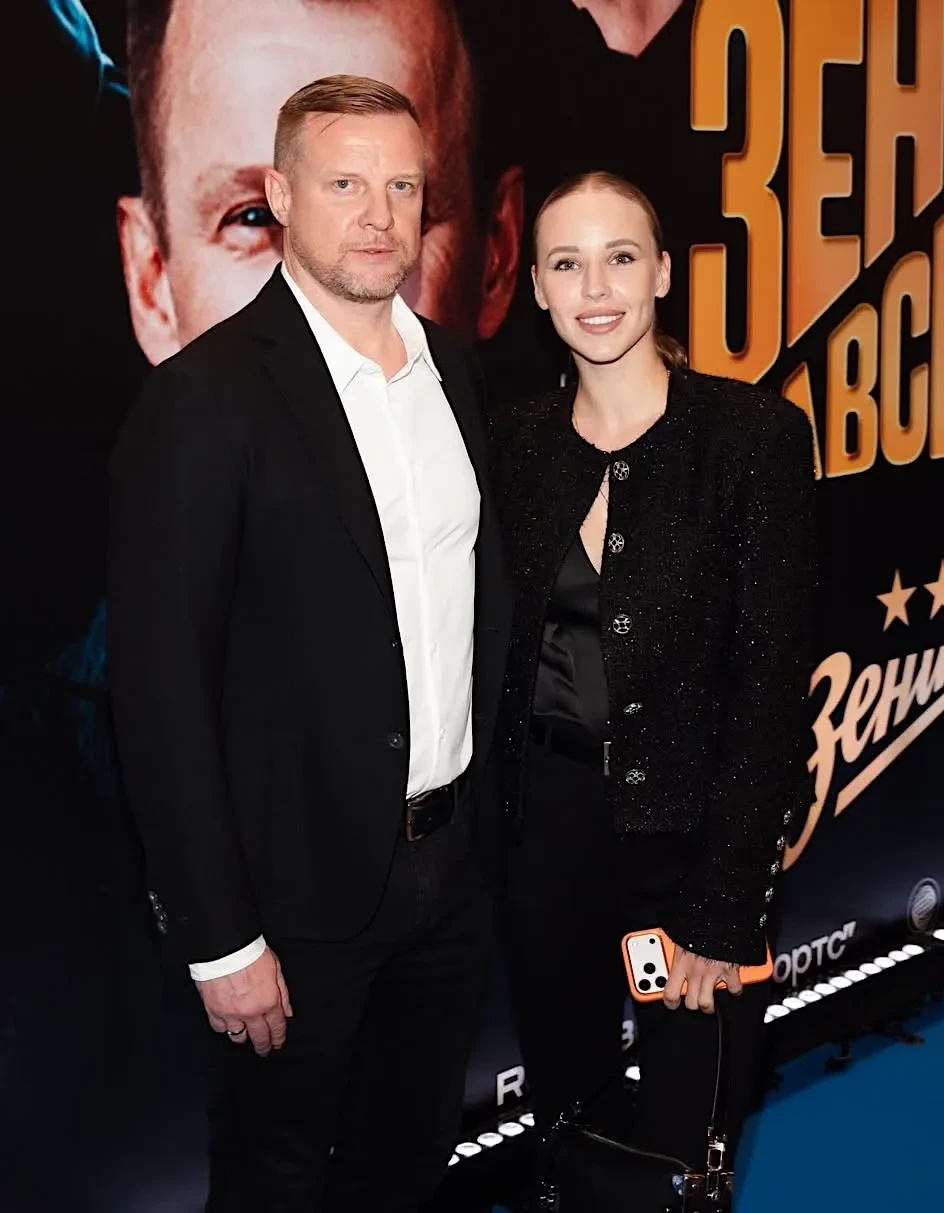 47-летний экс-футболист Вячеслав Малафеев впервые вышел в свет с 25-летней женой Ангелиной Шкатовой. Супруги посетили закрытую премьеру фильма "Зенит навсегда", которая прошла в Москве.