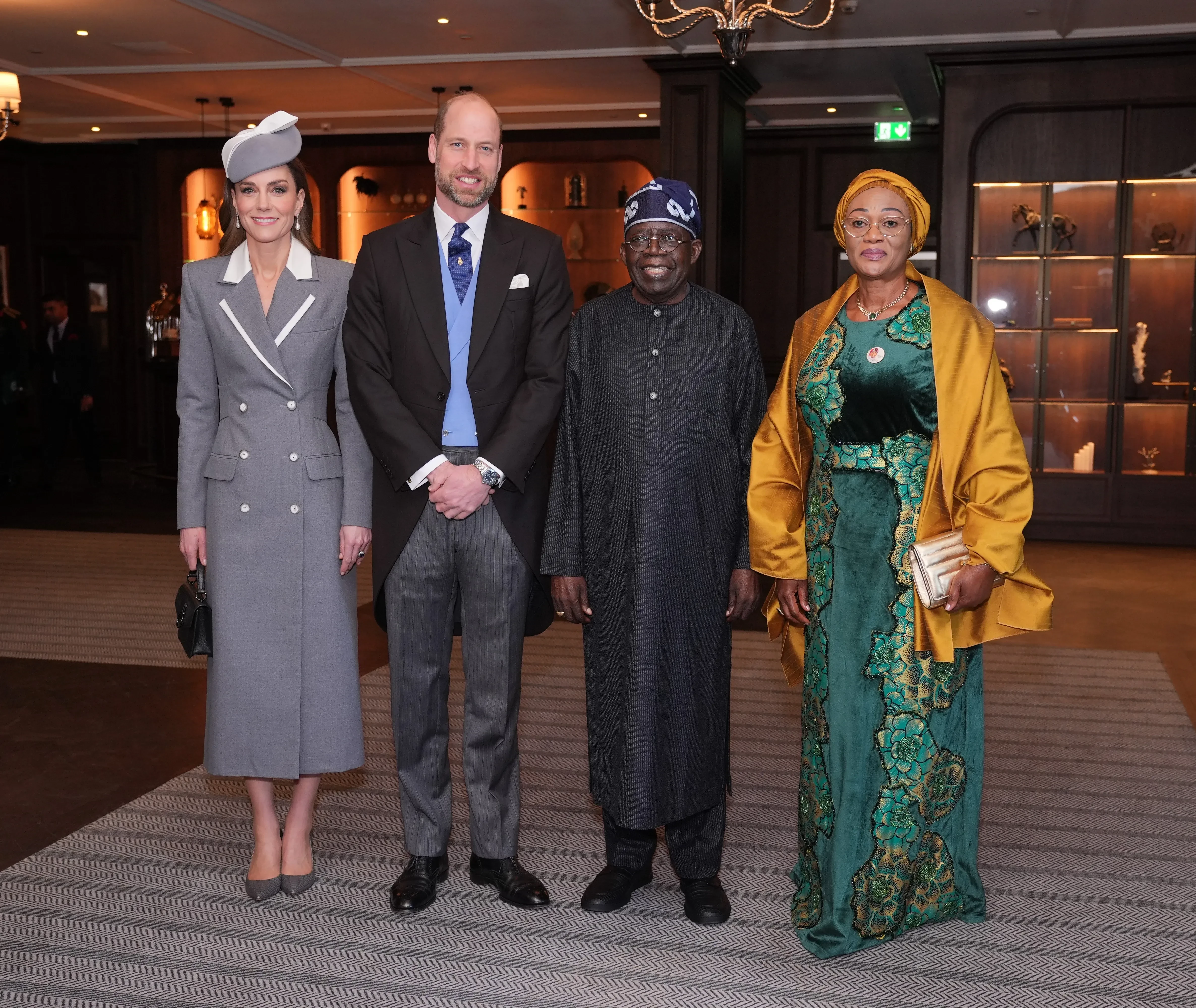 Принц Уильям и Кейт МиддлтонПринц Уильям и Кейт МиддлтонКейт Миддлтон, принц Уильям и президент Нигерии Болу Тинубу с женой Олуреми ТинубуПосле встречи принц и принцесса Уэльские вместе с гостями отправились на машине на Королевскую площадь в центре Виндзора. Там их встретили король Карл III и королева Камилла, после чего все отправились во дворец. Впереди у нигерийского президента государственный банкет с королевской семьёй.