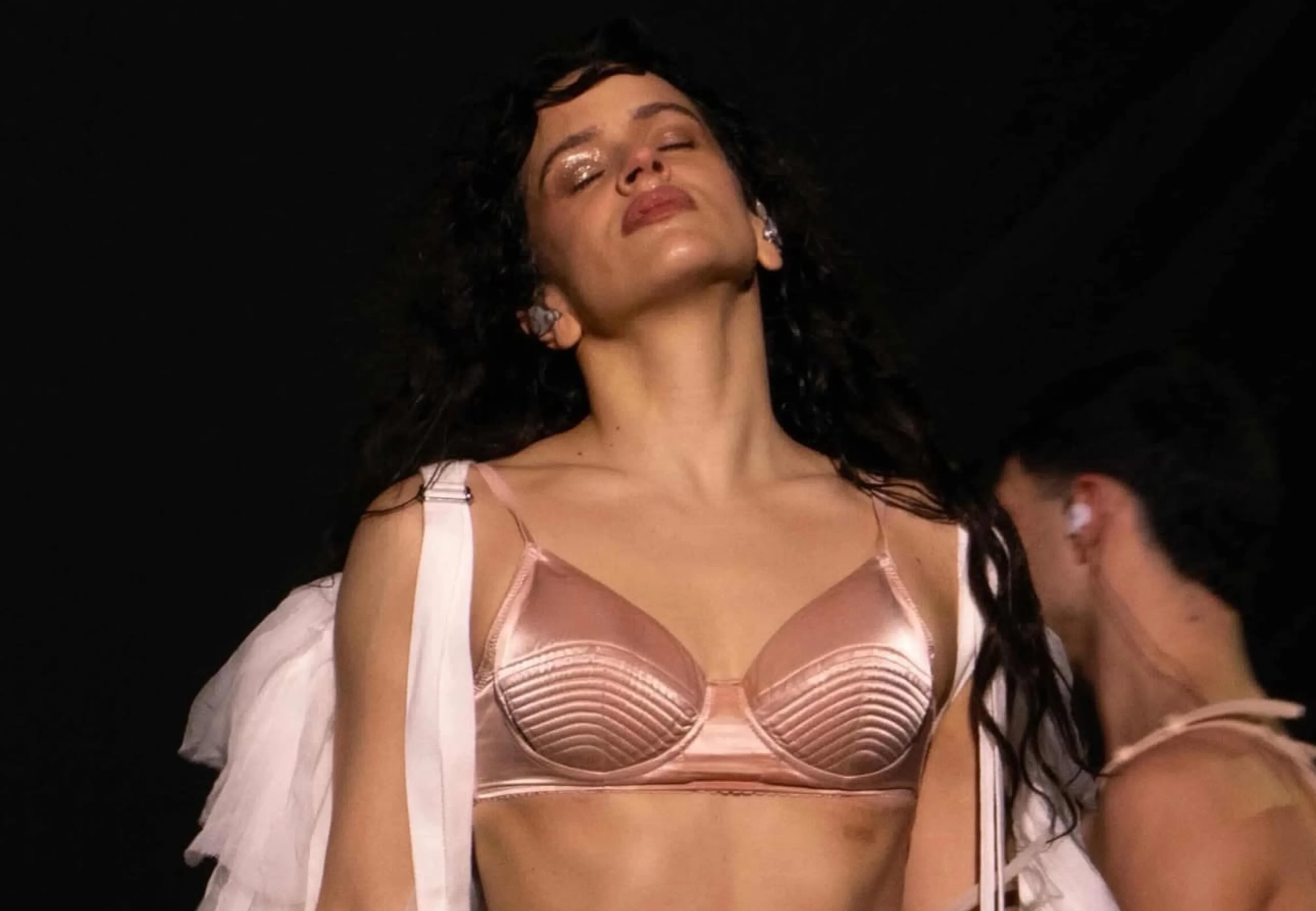 РозалияРозалияРозалия исполнила несколько песен в розовом атласном бра. Известно, что тур певицы продлится до сентября и завершится в Пуэрто-Рико, поэтому есть вероятность, что данный наряд мы увидим ещё не раз на певице.