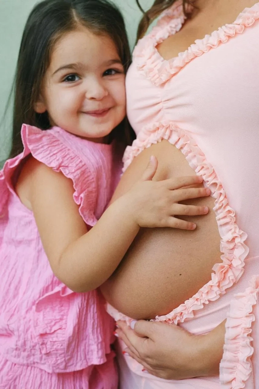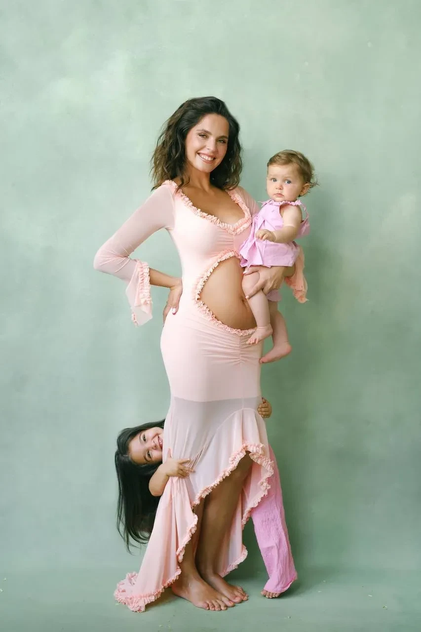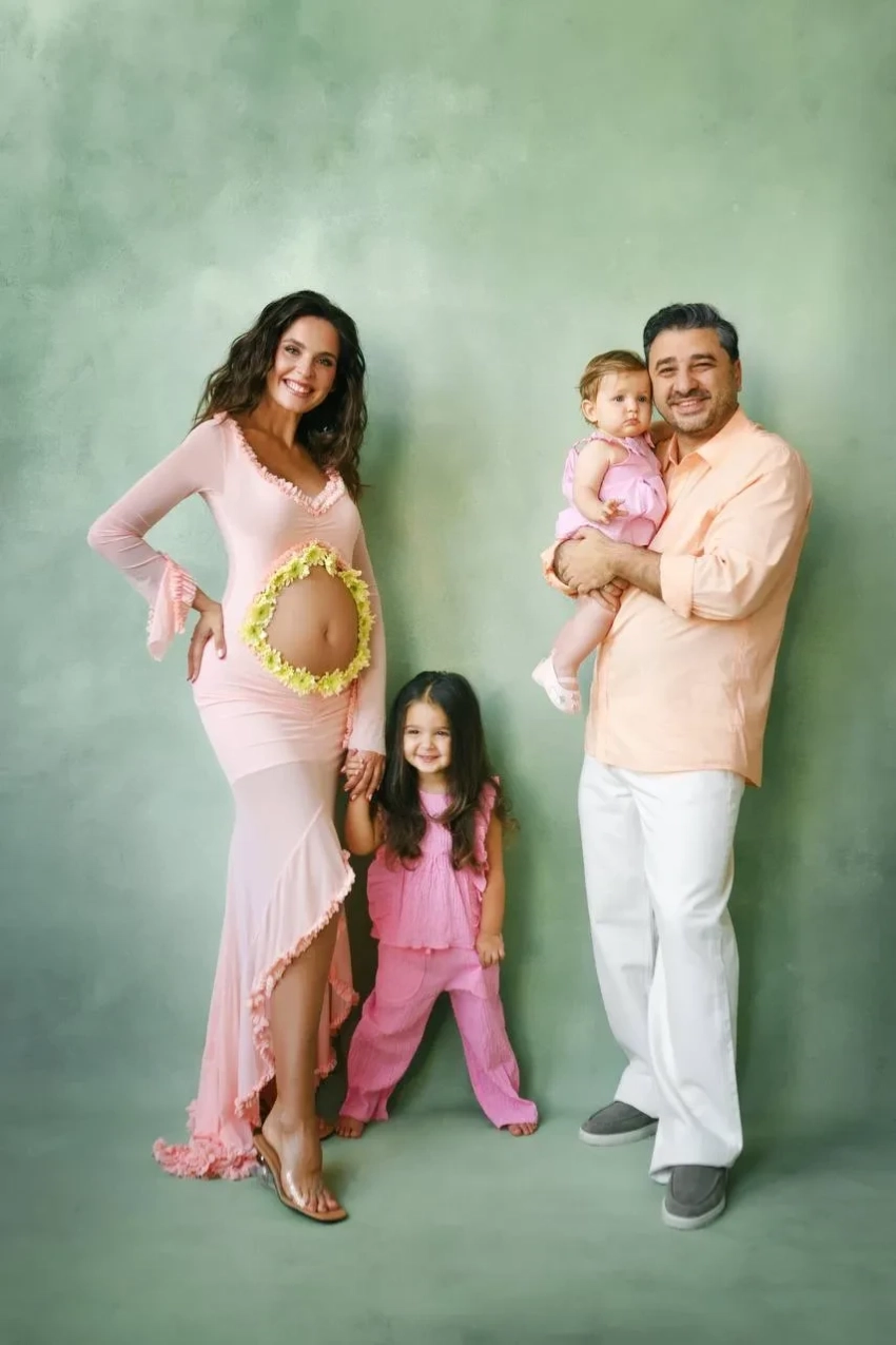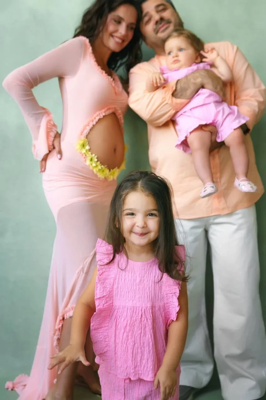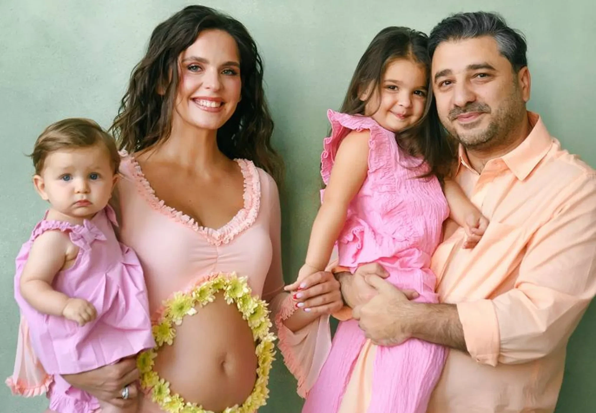 "Сядьте, если стояли. В нашей семье скоро появится новый человечек, и наши сердца переполняют радость и гордость", — говорится в заявлении супругов. Они также выложили кадры из фотосессии, в которой попозировали с дочерьми, при этом на Лизе было открытое в области живота платье, которое подчеркнуло тот факт, что она находится в положении.