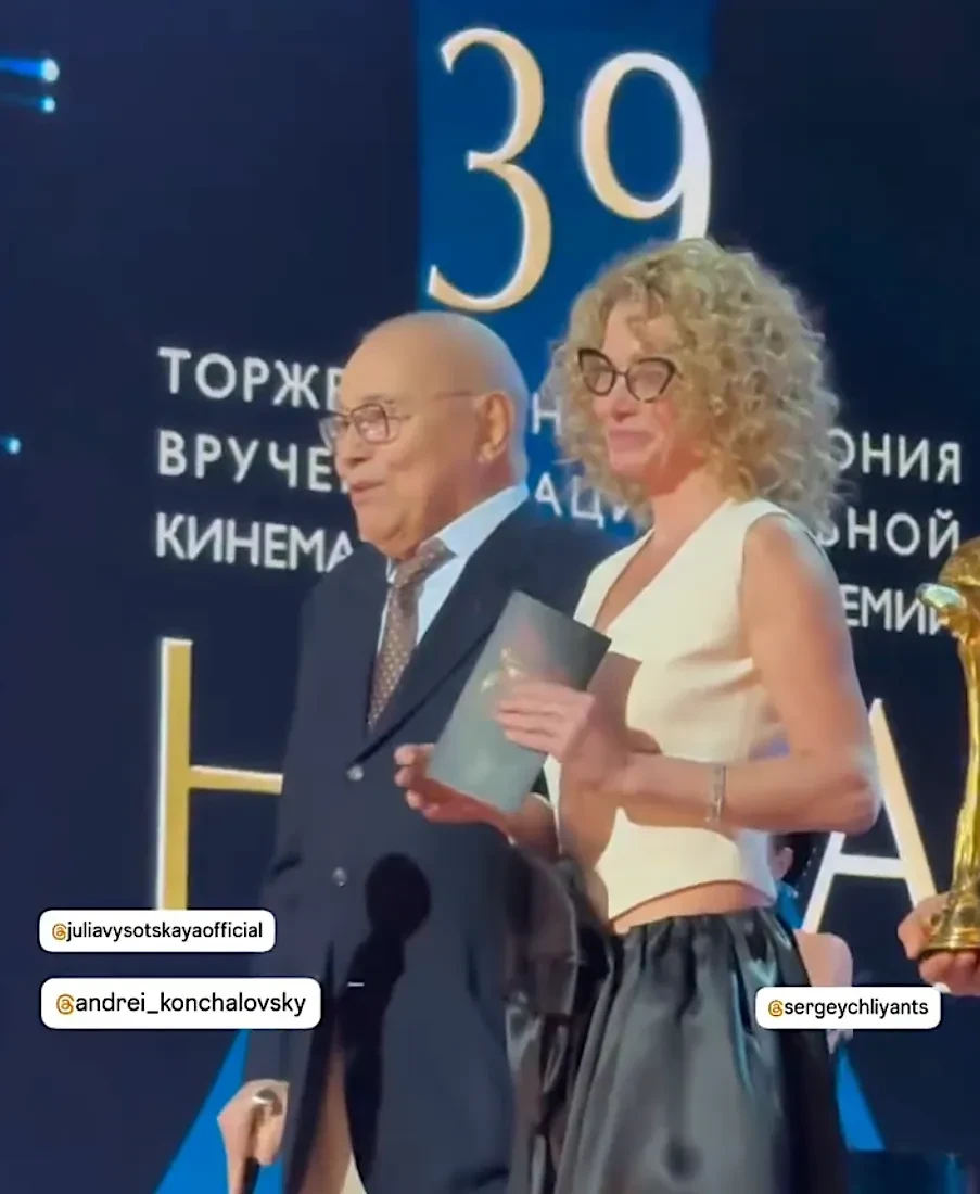 Юлия Высоцкая, Андрей Кончаловский, Юлия Снигирь, Евгений Цыганов и Юра Борисов с женой посетили премию "Ника"