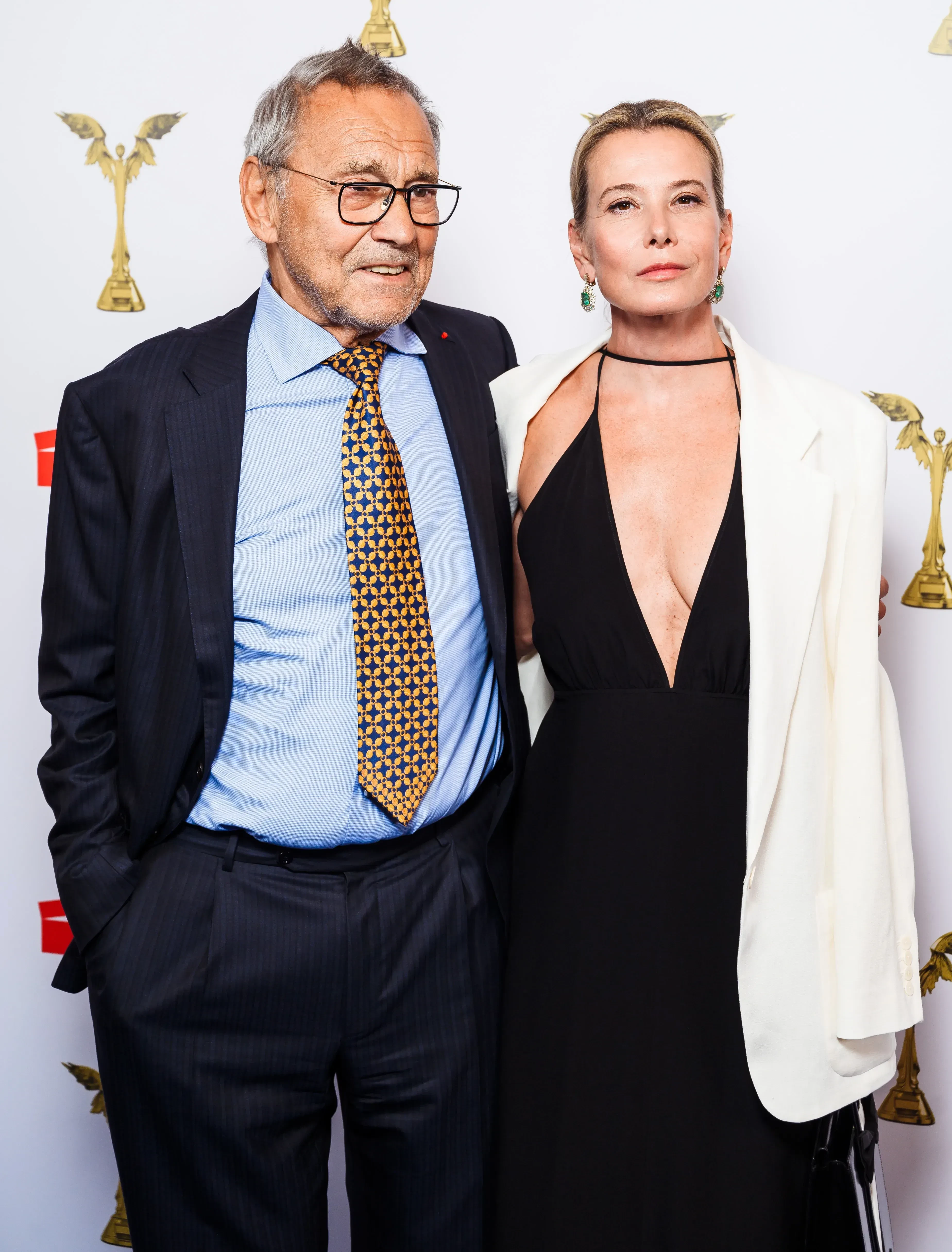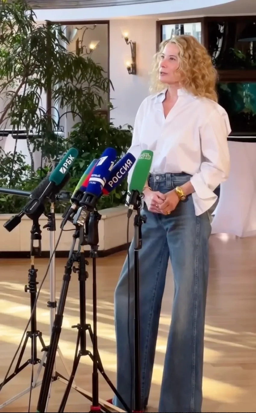 52-летняя Юлия Высоцкая вместе с мужем Андреем Кончаловским, которые недавно посетили кинопремию "Ника", вышли в свет в Москве. Актриса и 88-летний режиссёр появились перед прессой между показами спектаклей в Театре Моссовета. Высоцкая в белой рубашке и синих джинсах позировала рядом с супругом, который был одет в синюю рубашку.