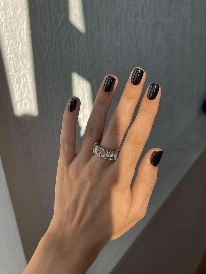 Днём этот цвет выглядит нейтрально, а вечером легко превращается в праздничный — достаточно добавить тонкий золотой акцент или минималистичный френч.