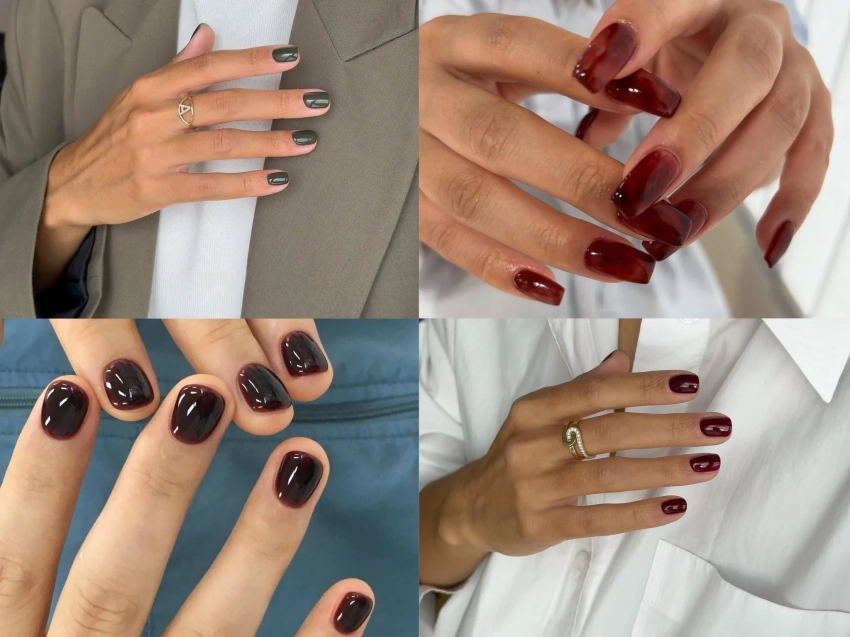 Полупрозрачные винные и бордовые лаки, темно-синий, изумрудный, фиолетовый — все они выглядят дорого и выразительно. Неожиданное возвращение года — черный цвет, который снова становится символом элегантности и силы.
