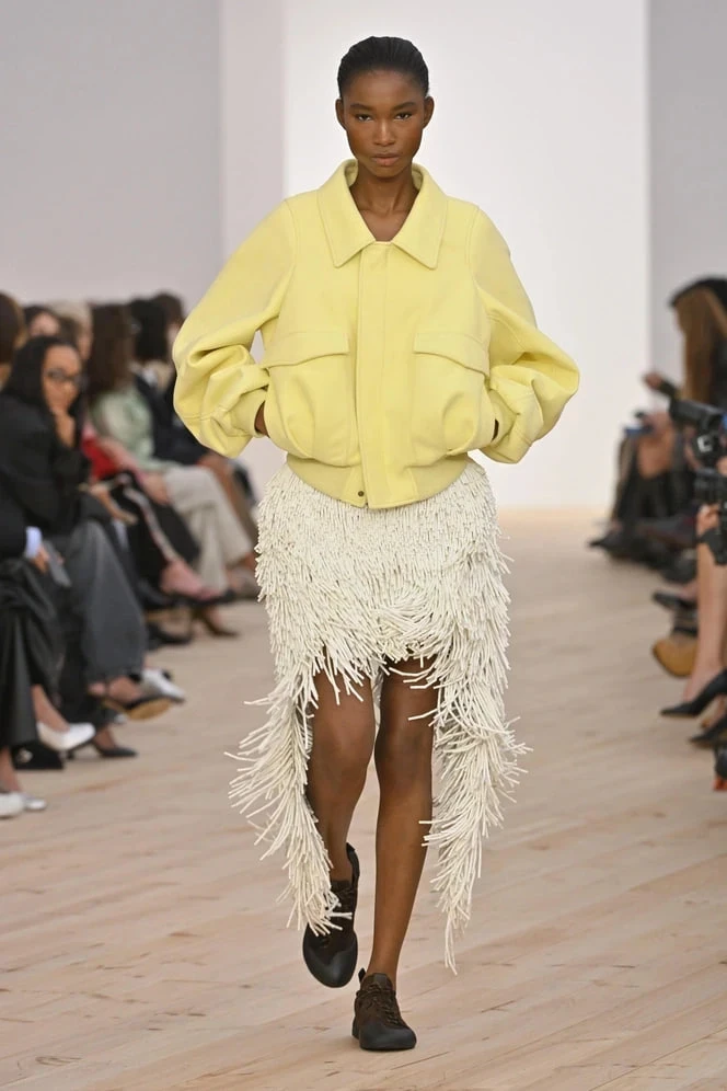 Стиль сафари снова в центре внимания. Юбки в оттенках хаки с накладными карманами, ремнями и плотными тканями отсылают к утилитарной эстетике, но при этом остаются женственными.