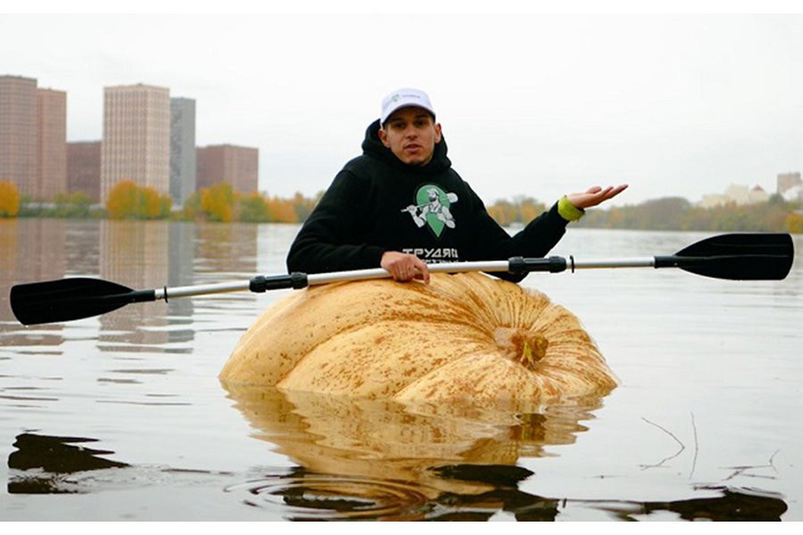 Фермер переплыл Москва-реку в гигантской тыкве