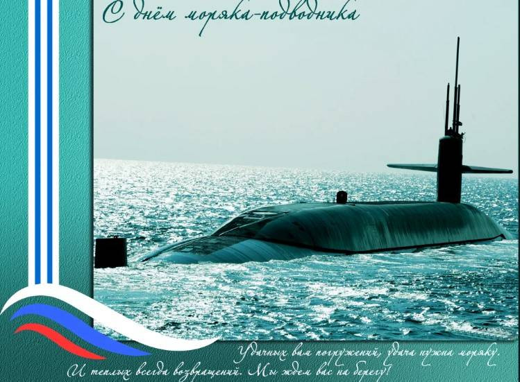 С Днем моряка-подводника! Искренне желаем Вам храбрости и мужества, покорения новых глубин, продвижения по службе и удачи в Вашей нелегкой работе!