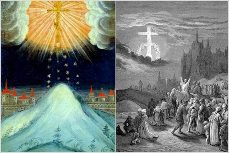 Однако в один прекрасный день, в день Пятидесятницы 352 года, на небе Иерусалима появился яркий Крест Господень. Это чудесное знамение было послано Господом отступнику, чтобы показать ему истину. Многие люди, видя это явление, включая самого Констанция, покаялись в своих заблуждениях и приняли крещение.