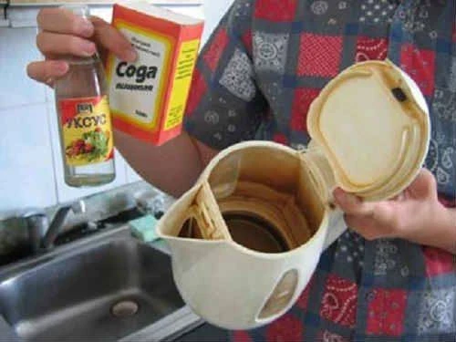 - Уксус — также эффективен в борьбе с известковым налетом. Рекомендуется смешать уксус с водой в равных пропорциях, залить в чайник и прокипятить. После охлаждения важно несколько раз промыть чайник, чтобы убрать запах уксуса.