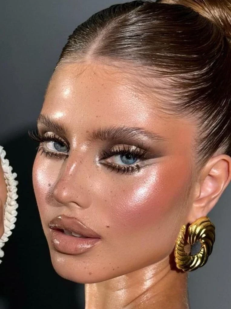 - Оливковые оттенки подчеркивают зелёные радужки.