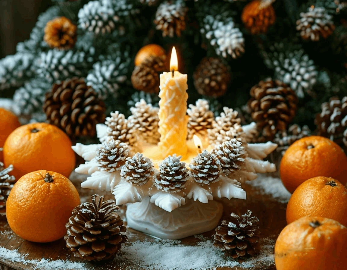 - Шишки, мандарины, конфеты и орехи на елке или рядом символизируют сытость, радость и благополучие.