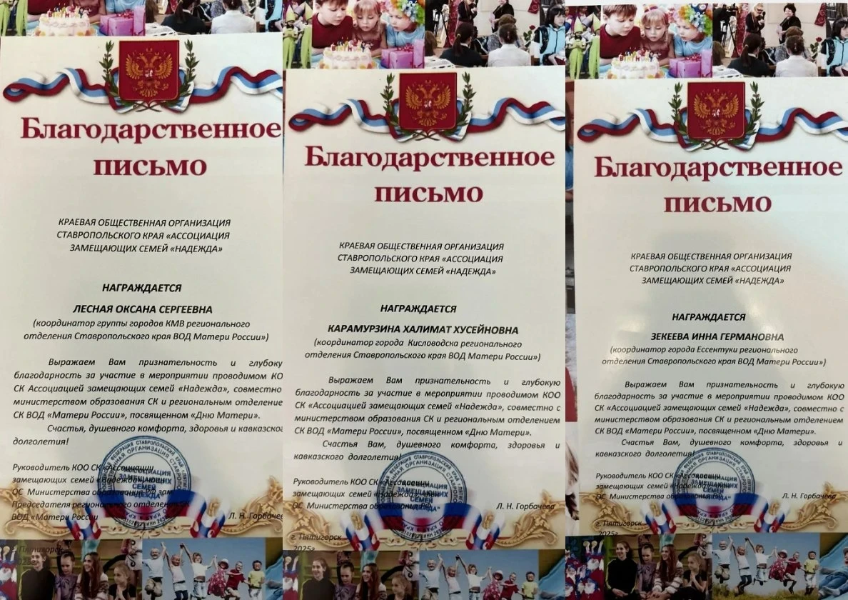 Отдельное внимание было уделено работе команды Движения «Матери России» по КМВ, среди участников которой были отмечены Инна Германовна Зекеева, Халимат Хусейновна Карамурзина и Оксана Сергеевна Лесная.