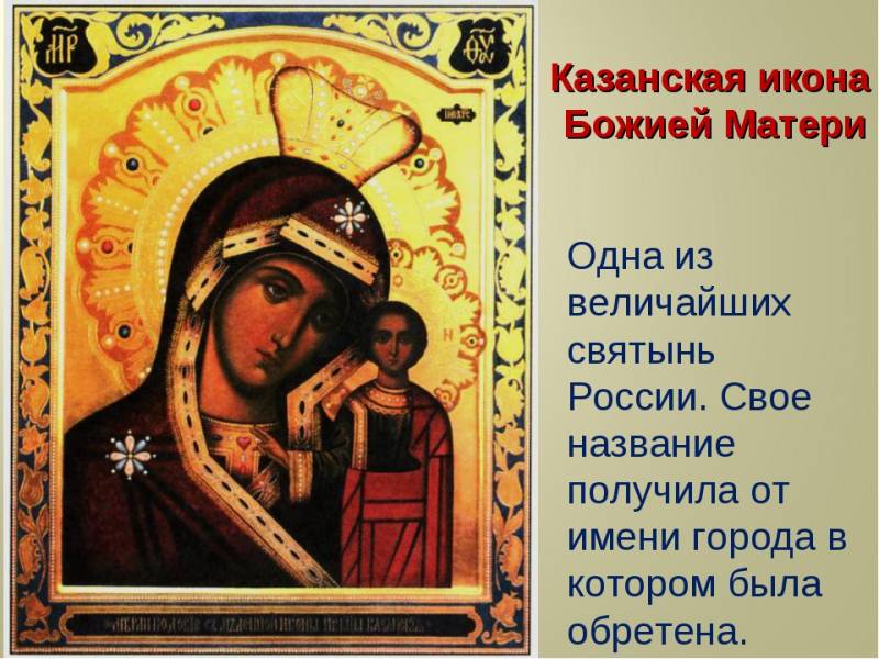 В эту пятницу, 21 июля 2023 года, в РПЦ празднуют День Казанской иконы Божией Матери, которую почитают, как защитницу русской земли. Этот праздник отмечают два раза в год. День явления иконы — 21 июля. 4 ноября Казанскую Богородицу благодарят за защиту Руси от поляков.
